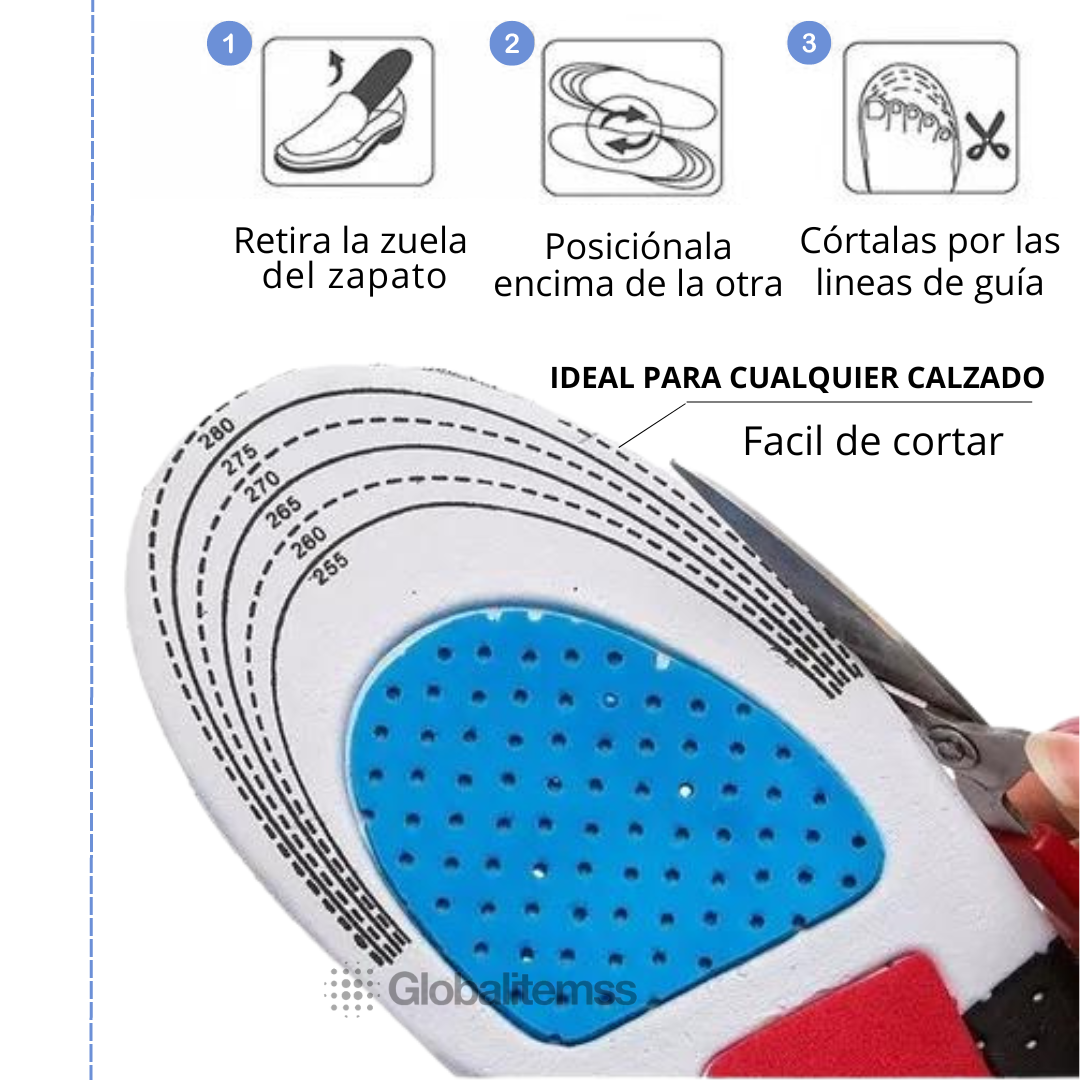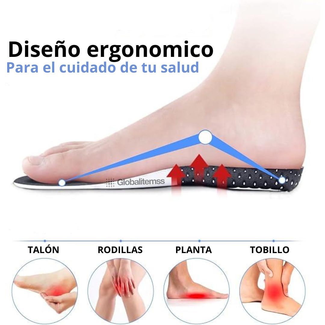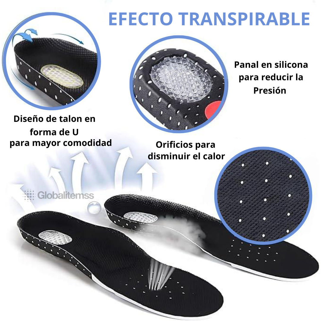 Protección del arco plantar: Distribuyen el peso uniformemente, aliviando el estrés en el arco, ideal para pies planos o fascitis plantar.